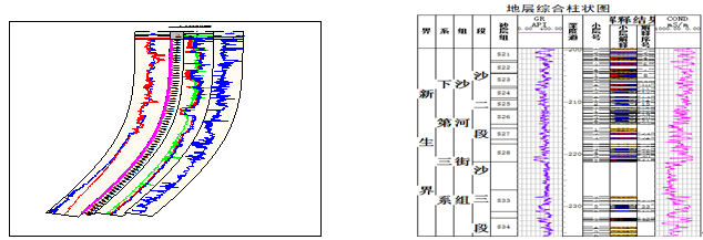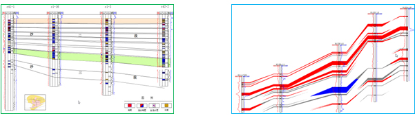 The Reservoir sections are created according to the well drilling data and logging data. They can reflect the structural feature, formation lithology, reservoir physical properties and oil-gas-water distribution. The software can generate stratigraphic correlation diagram simultaneously.